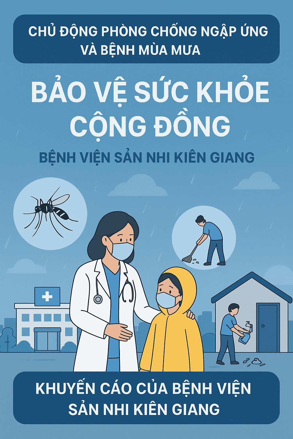 Bệnh viện Sản - Nhi Kiên Giang kêu gọi toàn thể người dân nâng cao ý thức bảo vệ môi trường, giữ gìn vệ sinh cá nhân và chủ động phòng bệnh, chung tay xây dựng môi trường sống và làm việc an toàn – sạch đẹp – thân thiện trong mùa mưa, triều cường năm nay.