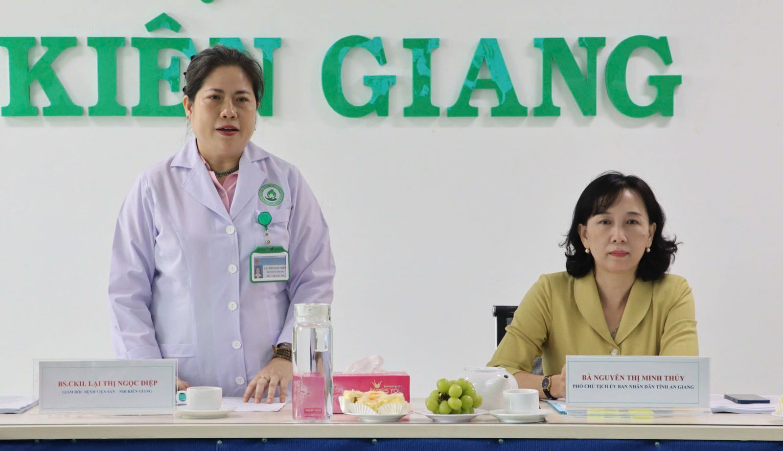 Giám đốc Bệnh viện Sản – Nhi Kiên Giang Lại Thị Ngọc Điệp báo cáo khó khăn về cơ sở vật chất và nhu cầu cấp thiết đầu tư mua sắm thiết bị, sửa chữa, cải tạo nâng cấp mở rộng bệnh viện