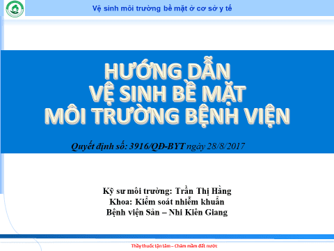 • Tuyên truyền năng cao nhận thức: Tầm quan trọng của vệ sinh môi trường bề mặt trong bệnh viện và nguy cơ lây nhiễm nếu không thực hiện đúng quy trình.