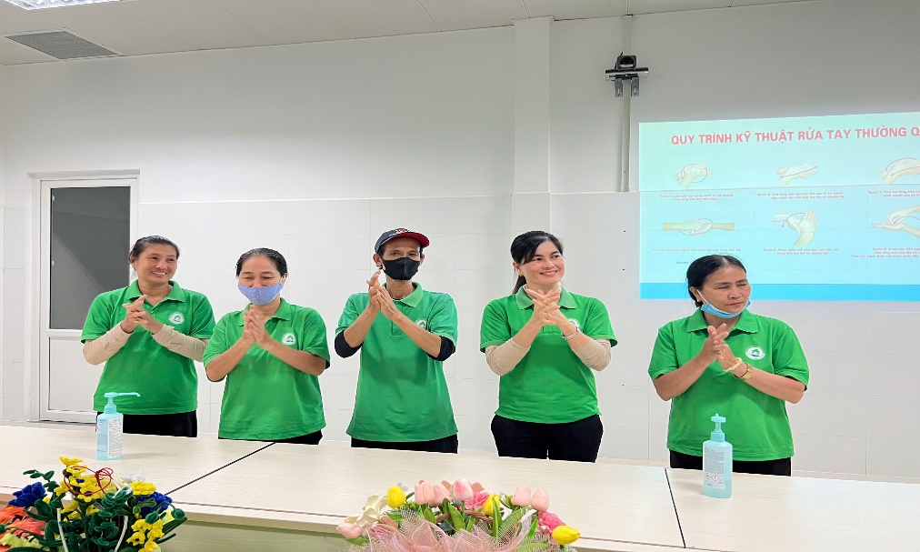 • Rửa tay: Đủ và đúng 5 thời điểm vệ sinh tay và rửa đủ 6 bước.