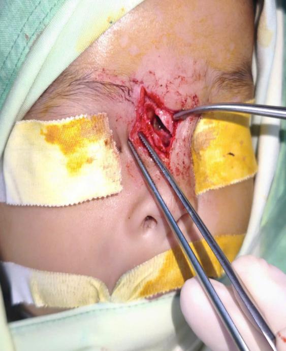 • Bóc tách tổn thương: Các bác sĩ đã khéo léo bộc lộ toàn bộ đường rò từ gốc mũi vào sàn sọ.